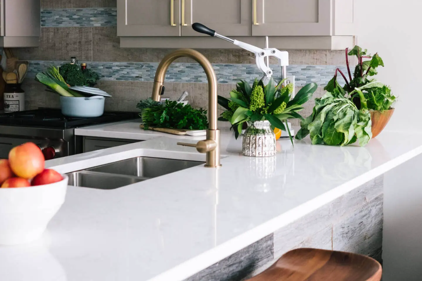 Revestimentos e tampos que aliam praticidade, beleza e resistência ao calor.
